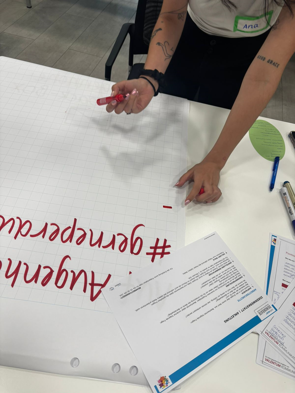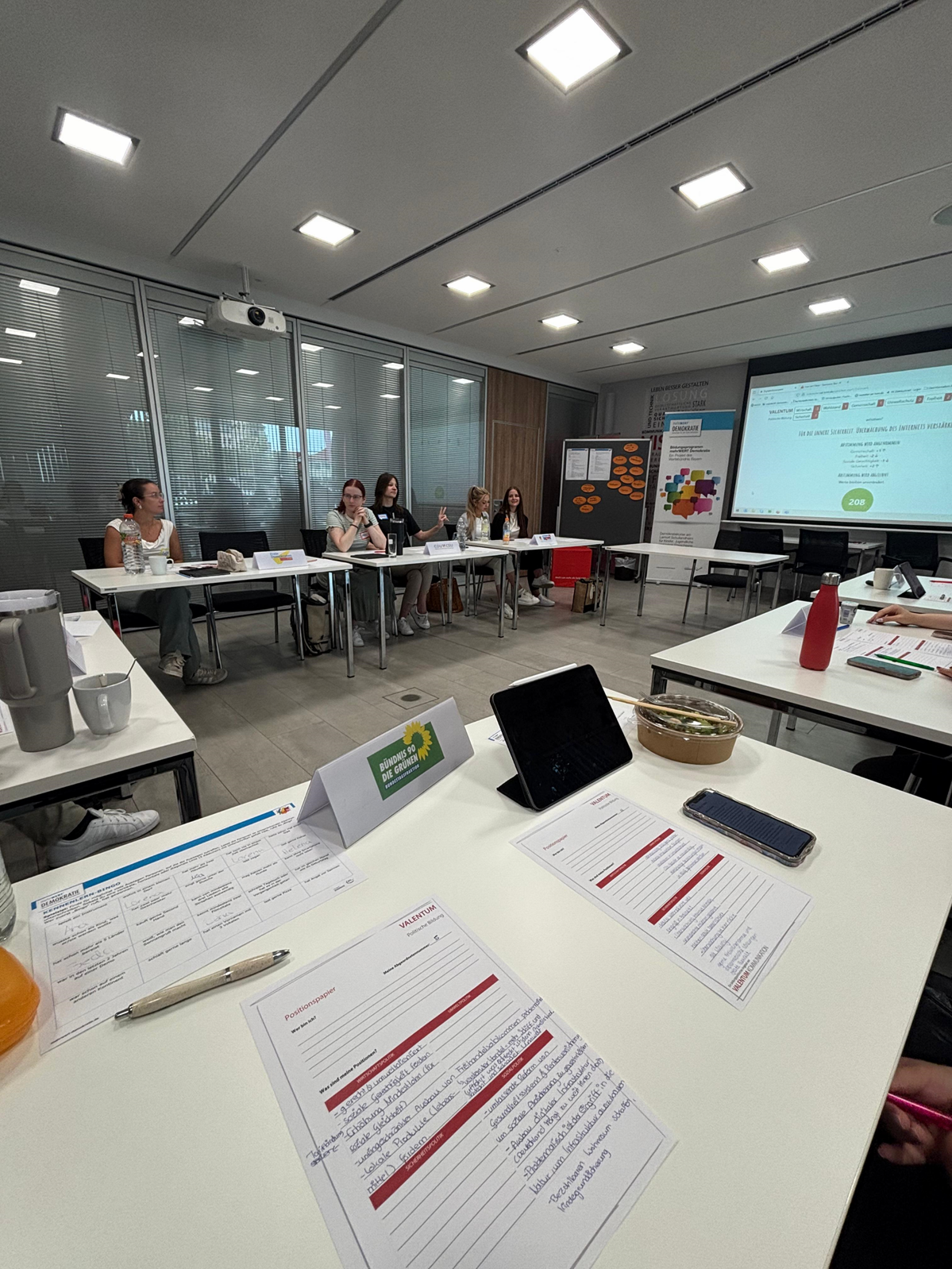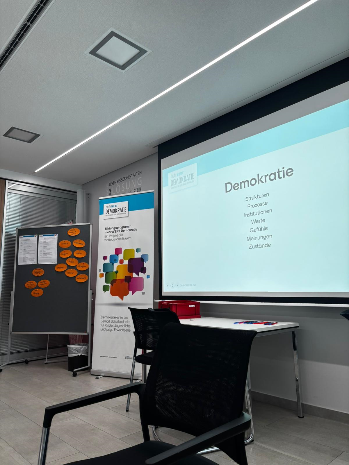 Im Rahmen unseres Projekts durften wir außerdem am Demokratiekurs „mehrWERT Demokratie“ teilnehmen – ein Bildungsangebot des Bayerischen Schullandheimwerks. Der Workshop fand am 23. Juni 2025 statt und war für uns ein ganz besonderer Tag. Denn hier ging es nicht um Theorie, sondern um Haltung, Austausch und Mitgestaltung. Wir diskutierten, was Demokratie für uns persönlich bedeutet, wie wir sie im Alltag erleben und auch, wo wir sie manchmal vermissen. In einem Rollenspiel als Bundestagsabgeordnete mussten wir Kompromisse finden, Werte vertreten und gleichzeitig das große Ganze im Blick behalten. Eine herausfordernde, aber extrem spannende Erfahrung. Der Tag hat uns nochmal deutlich gemacht: Demokratische Werte und unternehmerische Verantwortung gehören untrennbar zusammen.