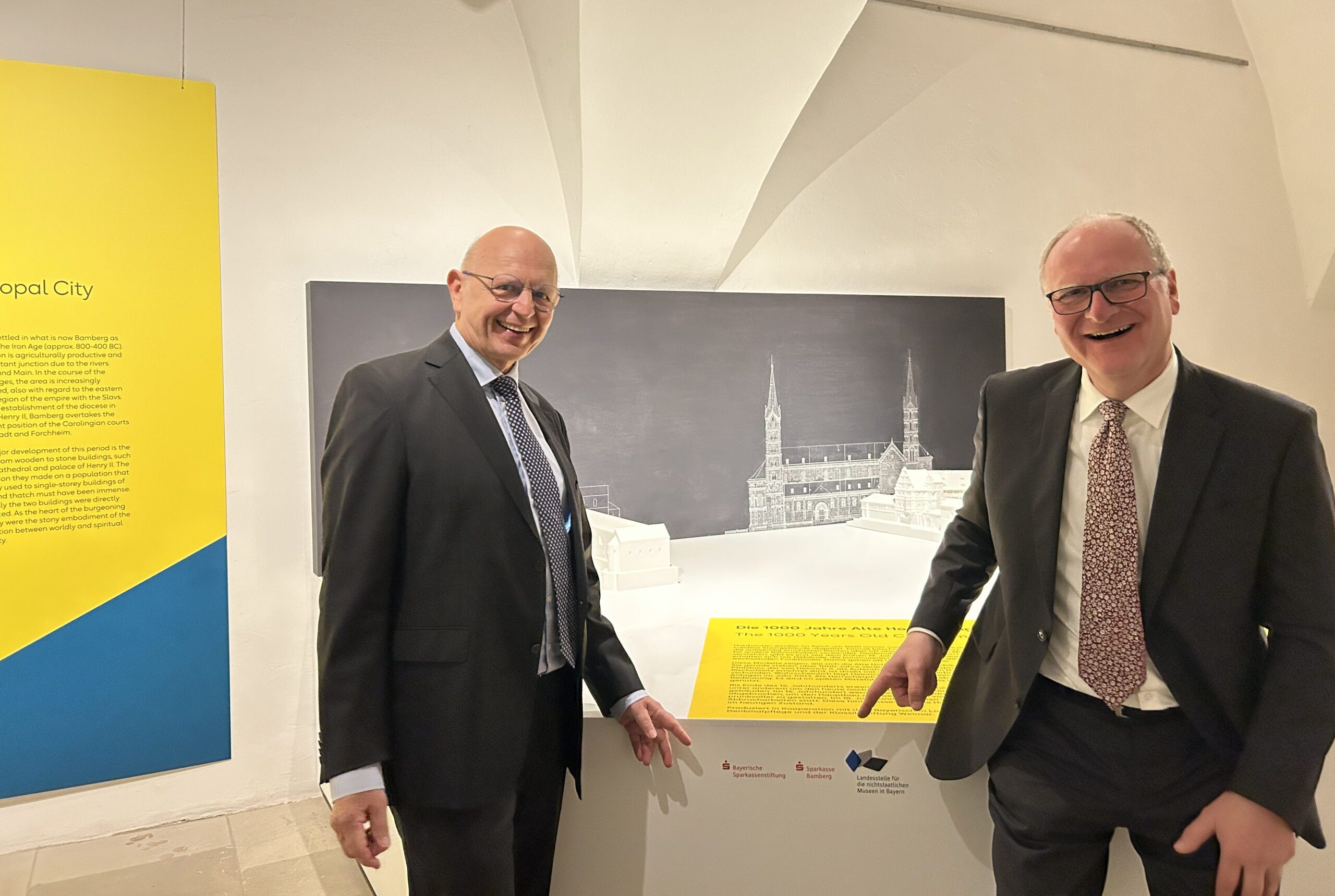 Dr. Ingo Krüger, der Chef der Bayerischen Sparkassenstiftung, kommt immer wieder gerne nach Bamberg. In den letzten Wochen gab es sogar gleich zwei Anlässe. Zum einen hat das Historische Museum dank der Unterstützung der Bayerischen Sparkassenstiftung eine neue Museums-App eingeführt. Die App macht einen Ausstellungsbesuch noch viel lebendiger und spannender. Und eine solche Ausstellung mit modernen und innovativen Medien läuft seit Ende Oktober im Museum: „Vor 1000 Jahren – Leben am Hof von Kunigunde und Heinrich II.“ Die Ausstellung betrachtet nicht nur das Kaiserpaar, sondern zeigt auch anschaulich, wie man vor 1000 Jahren in Bamberg lebte. Die Bayerische Sparkassenstiftung hat diese besondere Jubiläumsausstellung mit 20.000 Euro gefördert, unsere eigene Stiftung für Kunst, Kultur und Denkmalpflege hat weitere 10.000 Euro dazugegeben.